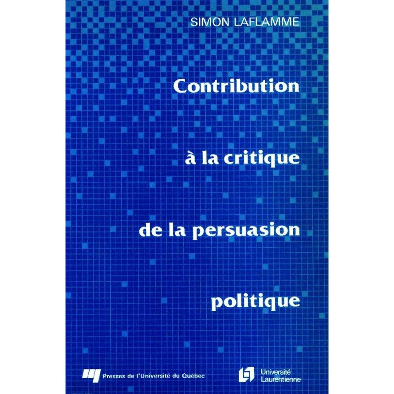 Simon Laflamme, Contribution à la critique de la persuasion, Presses de l'Université du Québec, 1987, 144 pages